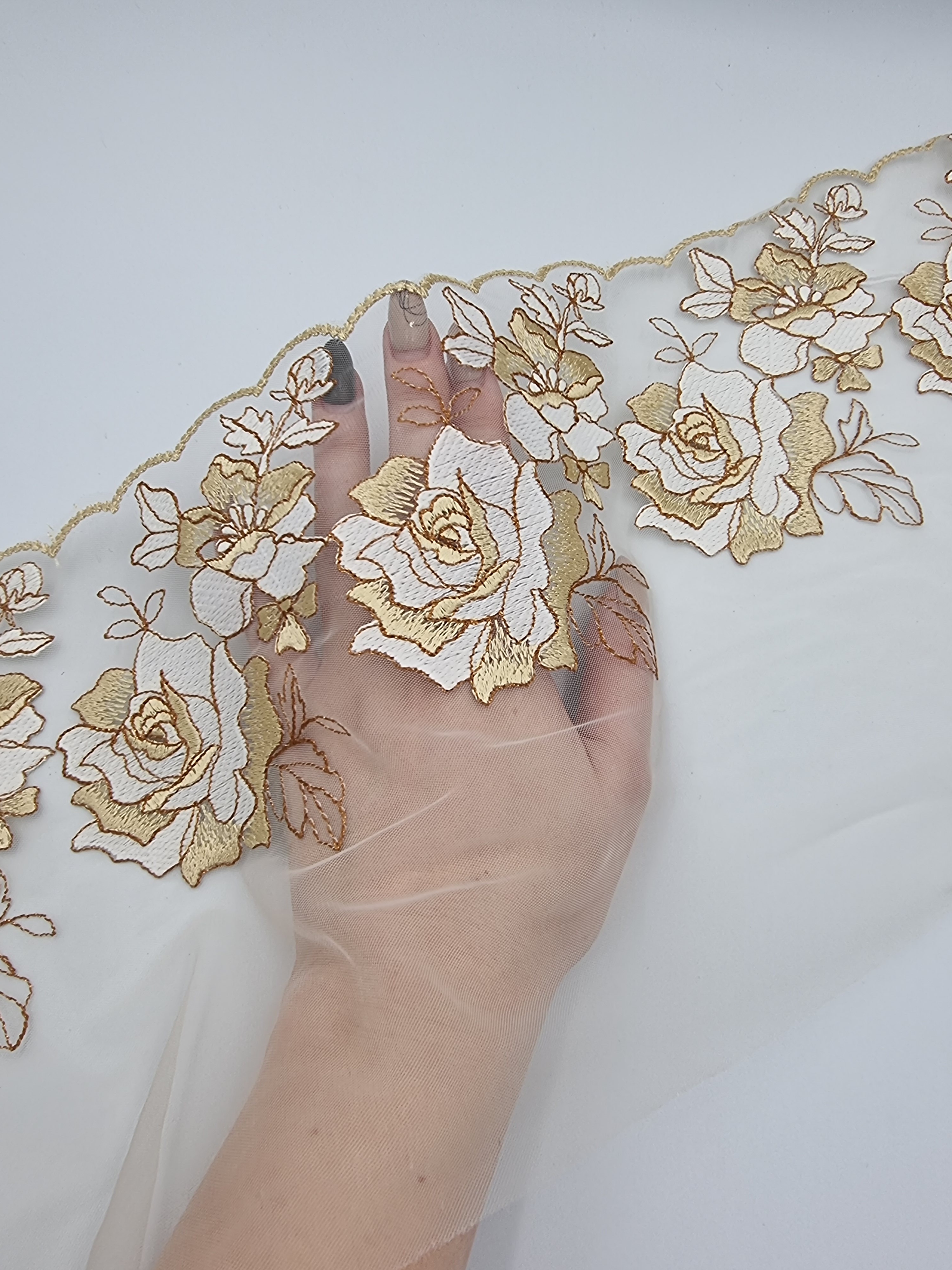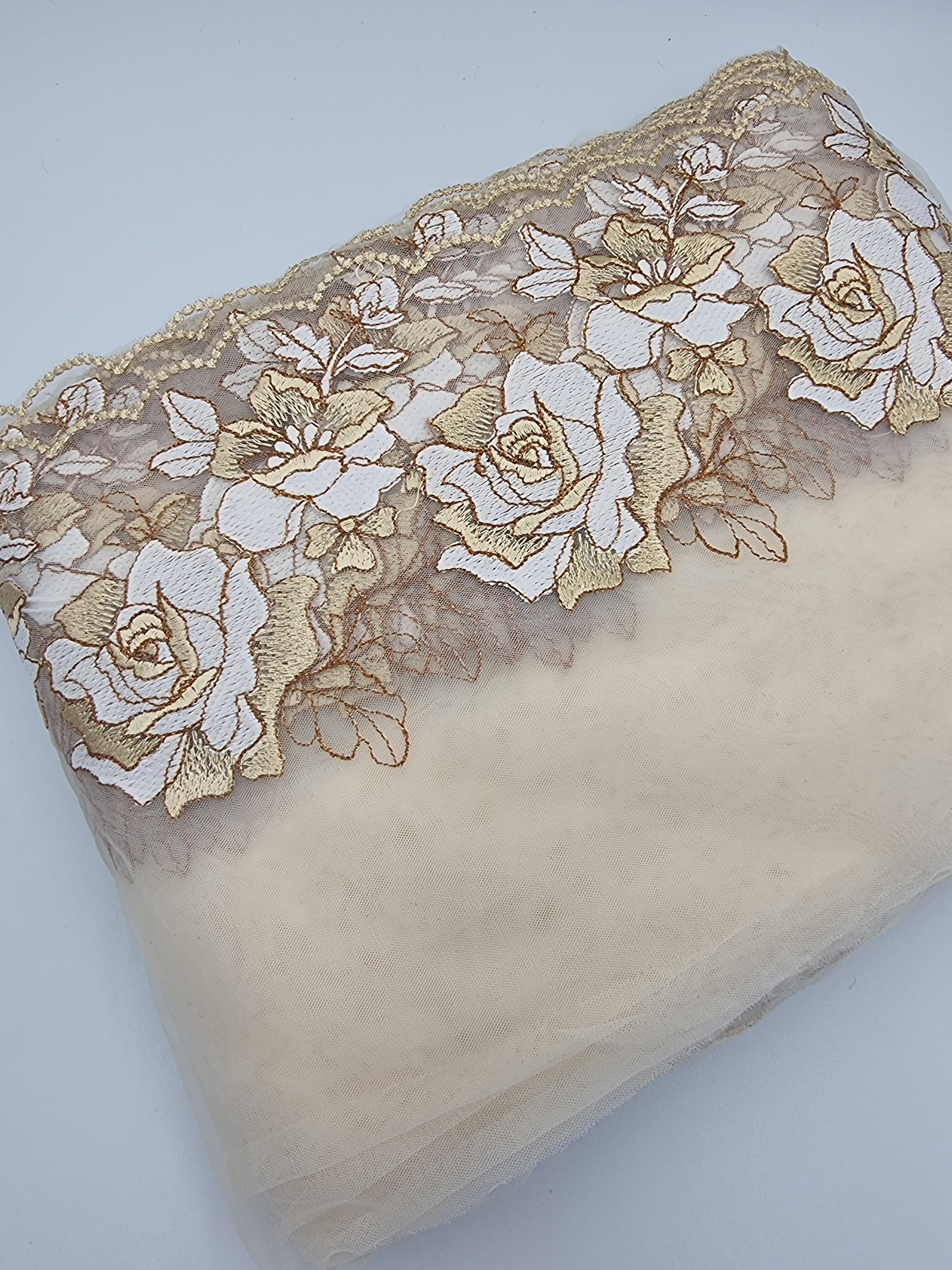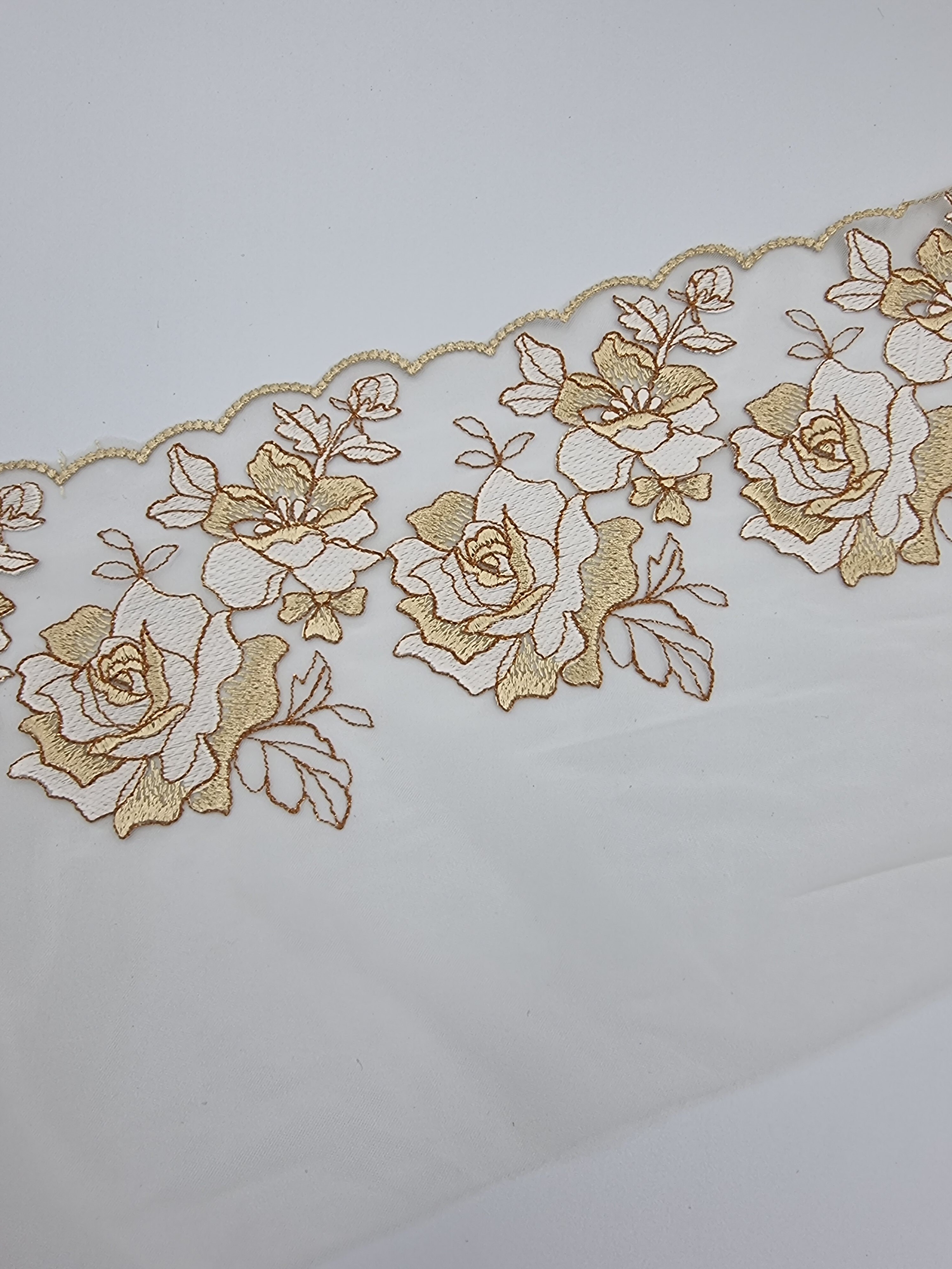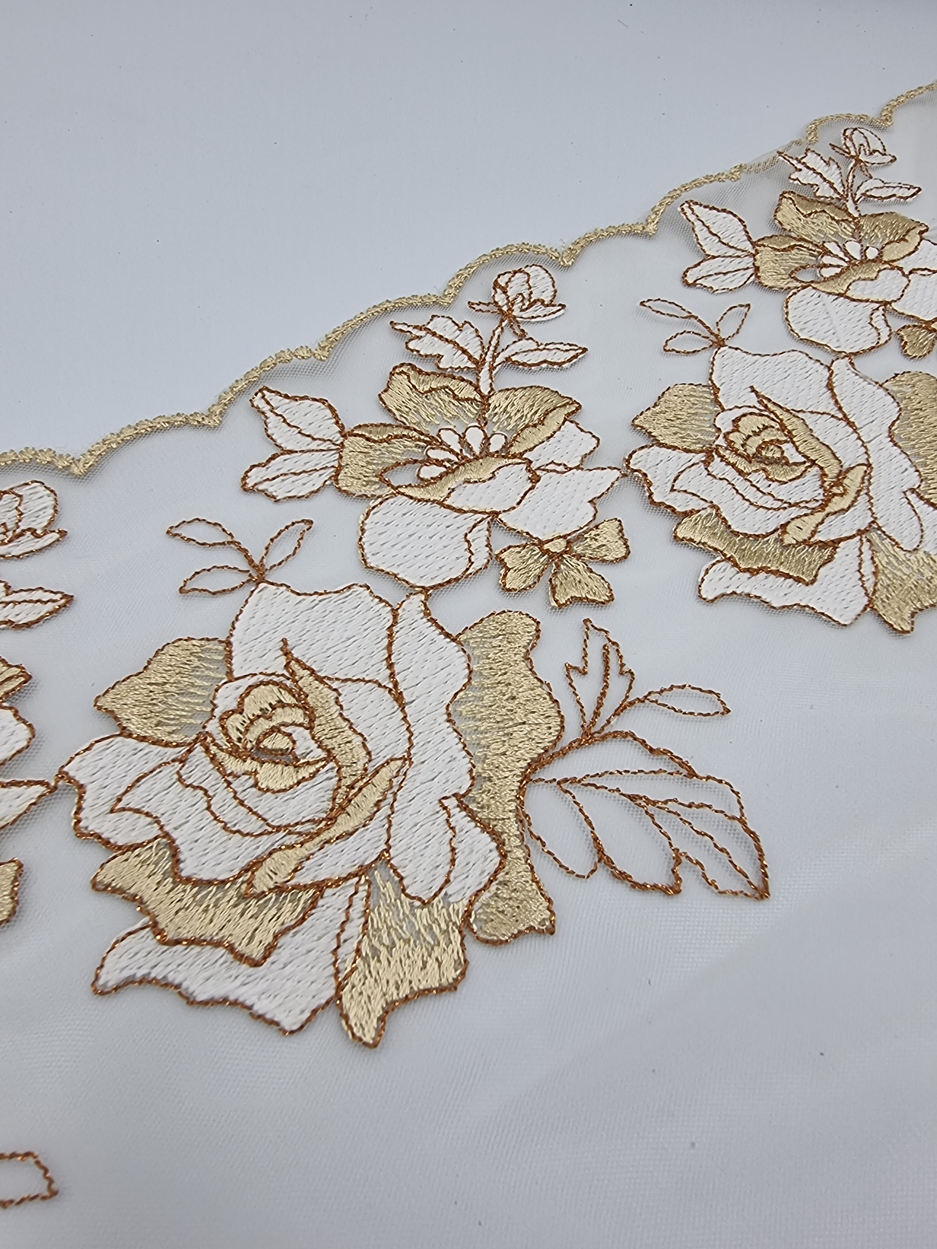 Вышивка на сетке бежевый/золото К792 левая 21 см