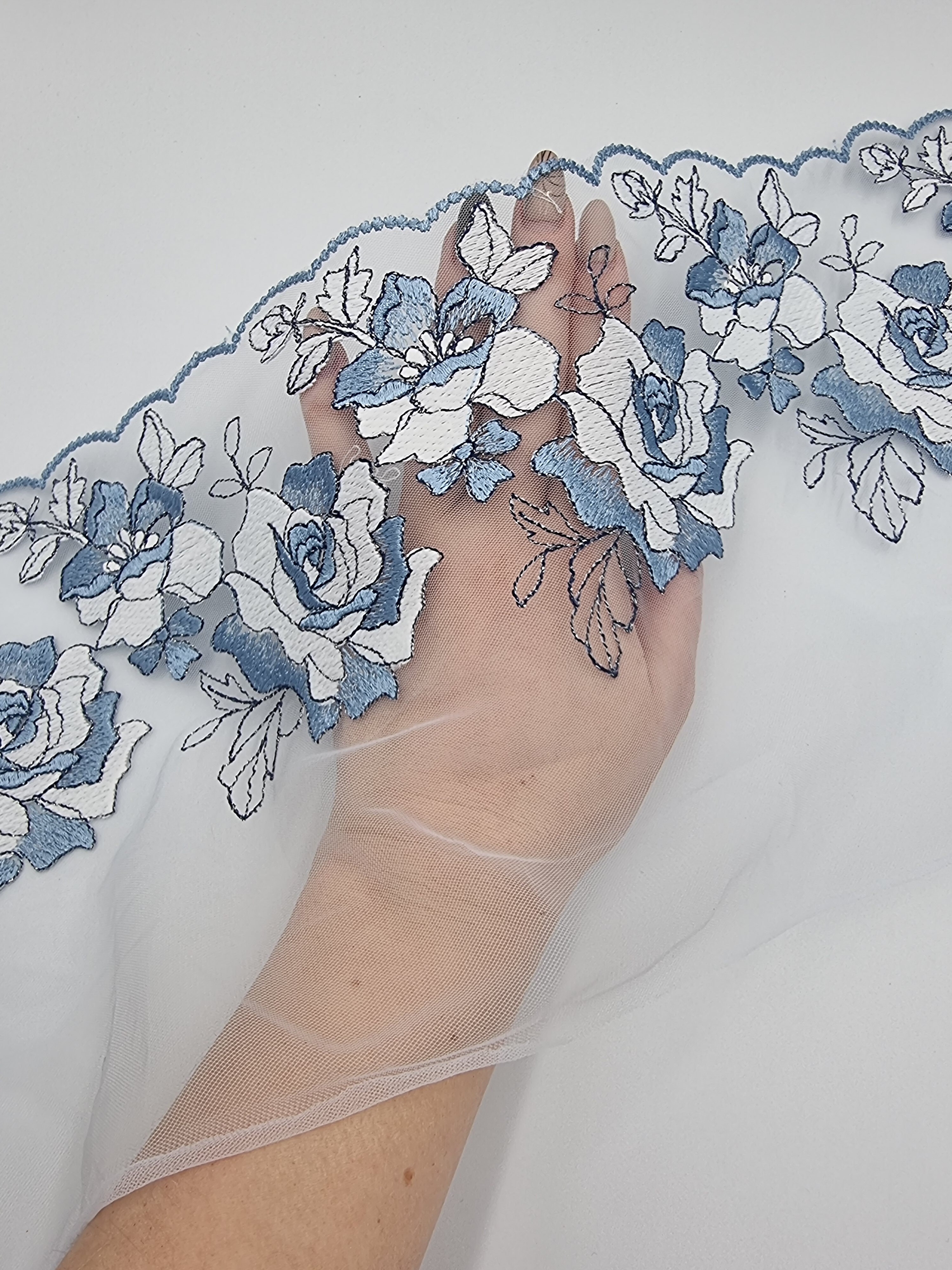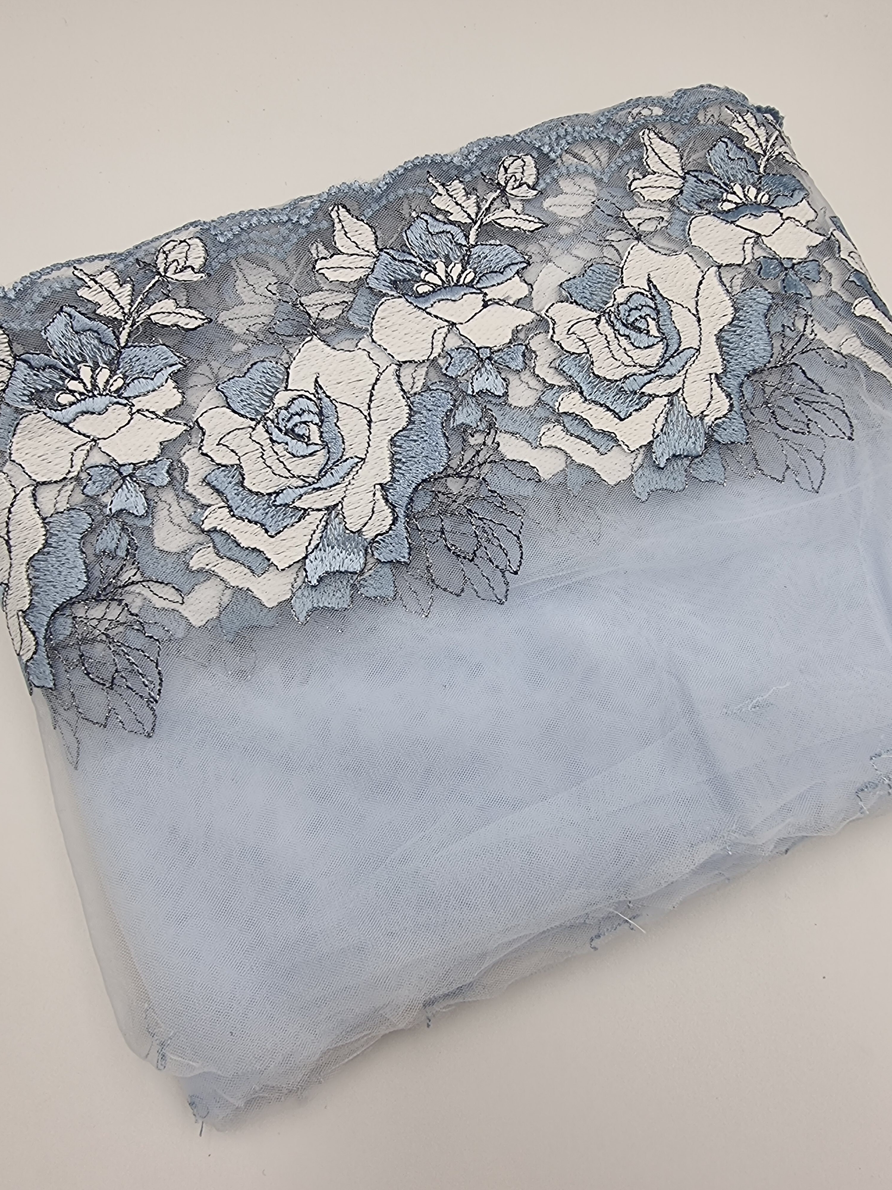 Вышивка на сетке голубой/серебро К790 левая 21 см
