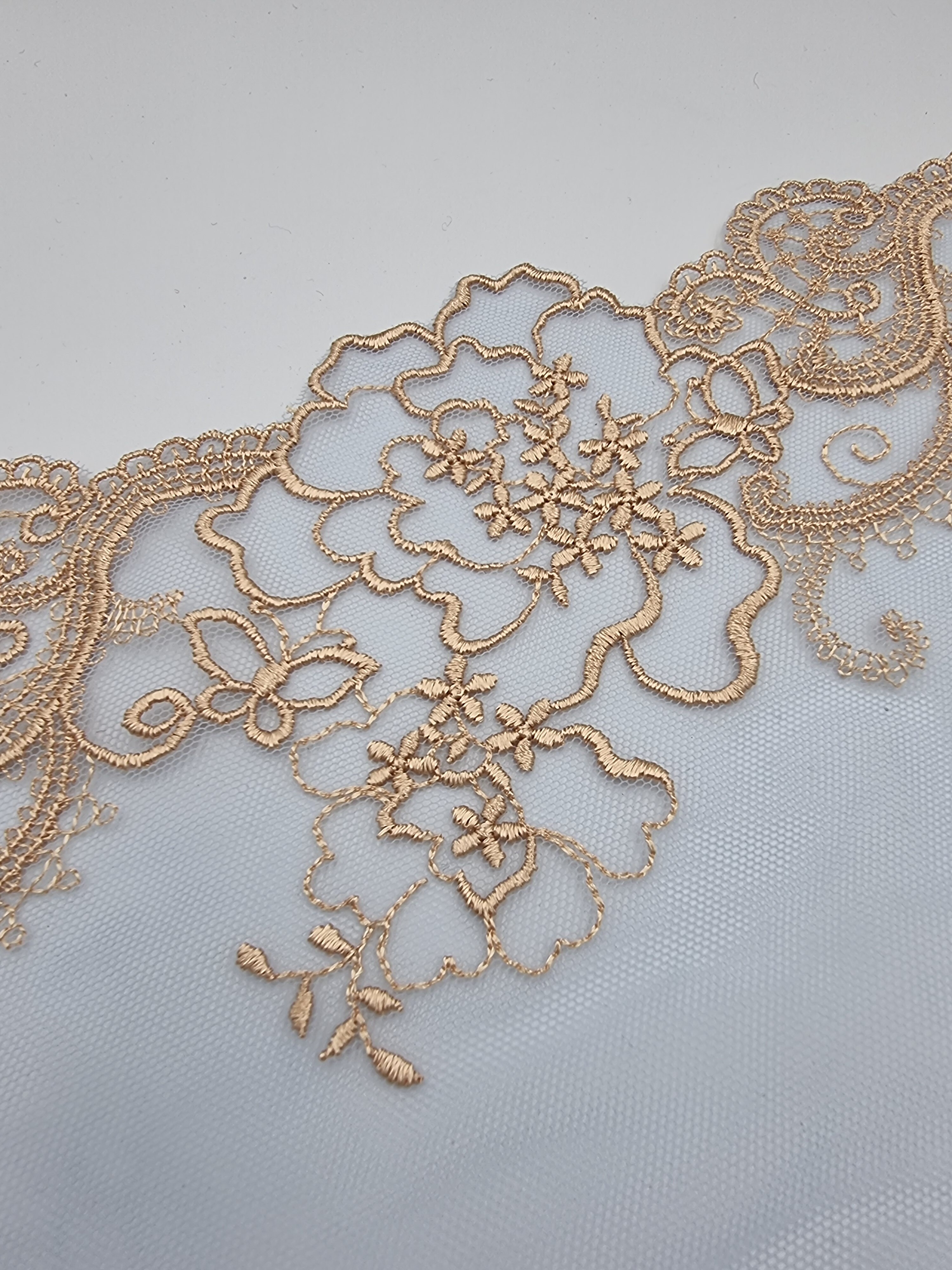 Неэластичное кружево для пошива нижнего белья. Имеет левую и правую сторону.